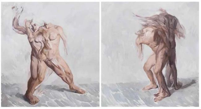 In the exhibition In the Garden of Species at O2art, Si Bowen has displayed more than 10 recent works, among which his treatment of the body was undoubtedly noticeable. In these works, bodies have no heads or limbs, turning themselves as inanimate objects that has been stripped of their specific identities and back to a more "natural" state. For example, in the work Handshake, the two bodies are sitting in a space that looks like a conference room, while the bodies themselves are exposed and distorted by the artist, just like uncivilized animals. All of these make handshaking, an cultured act endowed with meaning, absurd. In Two People While Driving, the man and woman are presented in a parallel relationship in the painting. The latter is like Venus of Urbino, while the former turns his back to the audience. In the blue green scenery in the background and the simple outline of the car, the two people, who are supposed to have an affair, become independent due to lack of narrative hints. This independent individuality is even more obvious in Conflict, which is shown in a more intense way: each of them is left with an intercepted action by the artist, but in two different shadows, the two seem to be facing their respective dilemmas without interfering each other. Behind the discussion on gender issues, the artist put more attention on the discussion of individuals: as a creature with thinking ability, how human beings face, stimulate, judge and understand the objects they confront and how to observe the reflection of themselves.