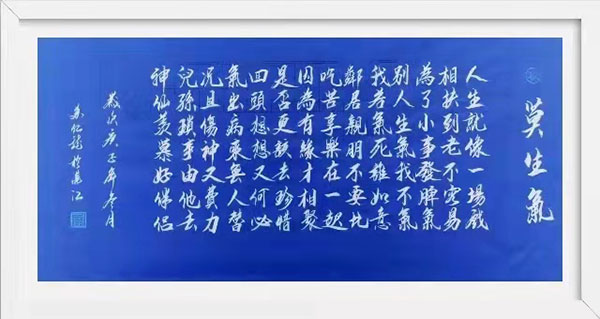还常到全国各地学习书法,又受到诸多名师指导教,特别是在魏雲飛,苏俊七,苏长江,徐湛几位师傅的点化画,书法水平突飞猛进。