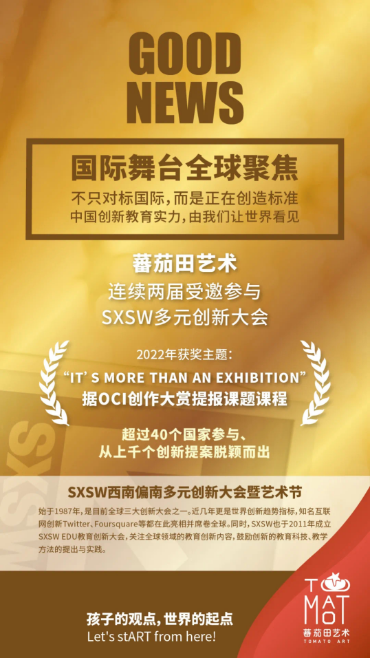 3月,蕃茄田艺术还受邀再度出席了全球三大创新大会之一的SXSW多元创新大会,发表名为“It's more than an exhibition”的研究专题获得2022年SXSW颁奖,并被列入Art&Storytelling官网进行分享。
